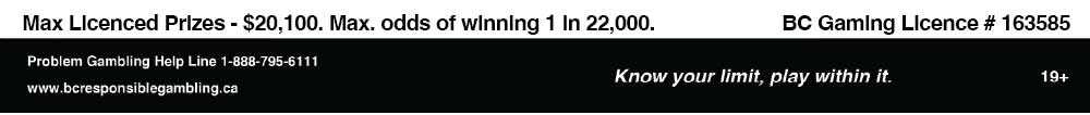 - Prizes not claimed within one year from date of prize won will be donated to charity after notifying BC Gaming Policy and Enforcement Branch.